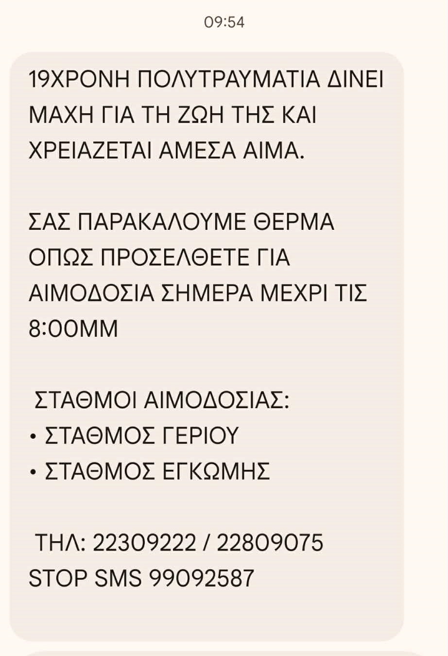Επείγουσα έκκληση για 19χρονη πολυτραυματία που χρειάζεται άμεσα αίμα