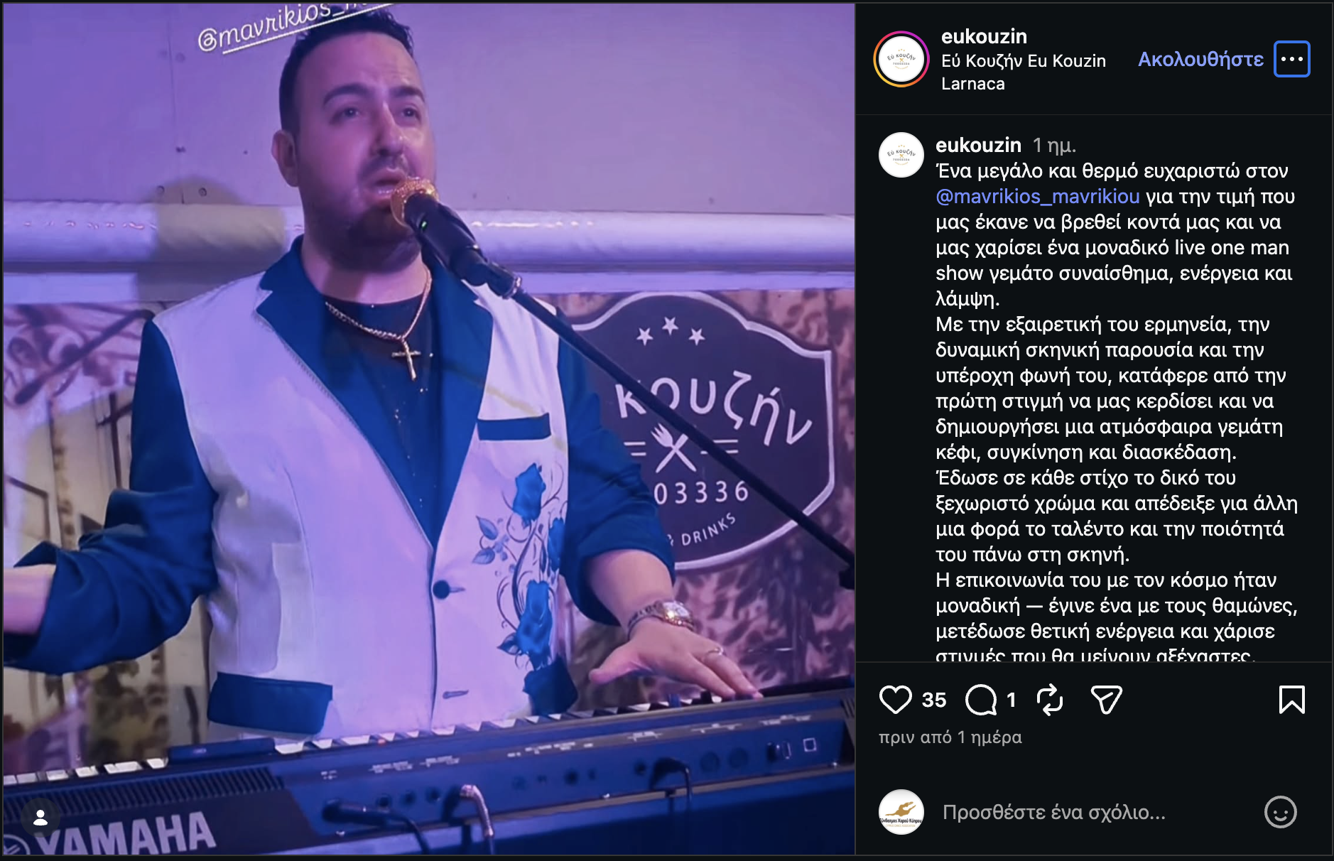 Καθοριστικό ρόλο στην επιτυχία της εκδήλωσης είχε και το περιβάλλον και η φιλοξενία του Ευκούζην, που για ακόμη μία φορά επιβεβαιώνει τη θέση του ως σημείο αναφοράς για ποιοτικές μουσικές και γαστρονομικές εμπειρίες στη Λάρνακα.
