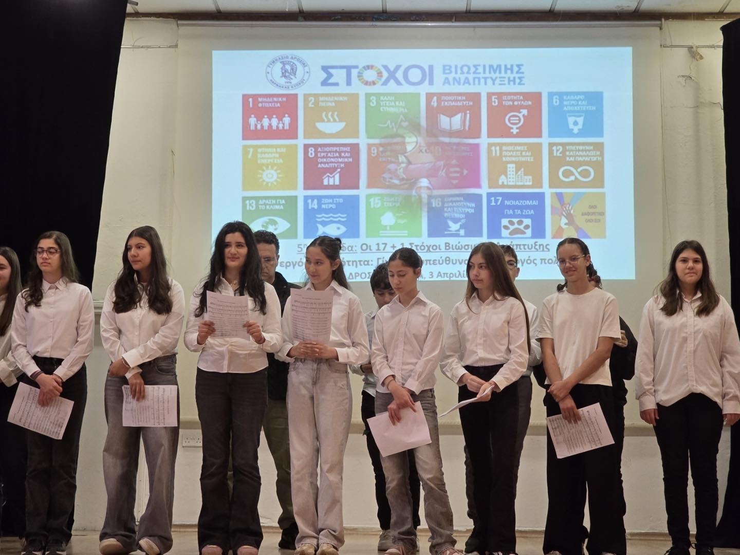 Οι μαθητές και οι μαθήτριές μας παρουσίασαν τις δράσεις τους, καθώς το κάθε τμήμα εργάστηκε και παρουσίασε τη δράση του στο πλαίσιο της θεματικής-στόχου που έχει αναλάβει για όλη τη σχολική χρονιά, εμπνευσμένη από τους 17 Στόχους Βιώσιμης Ανάπτυξης: