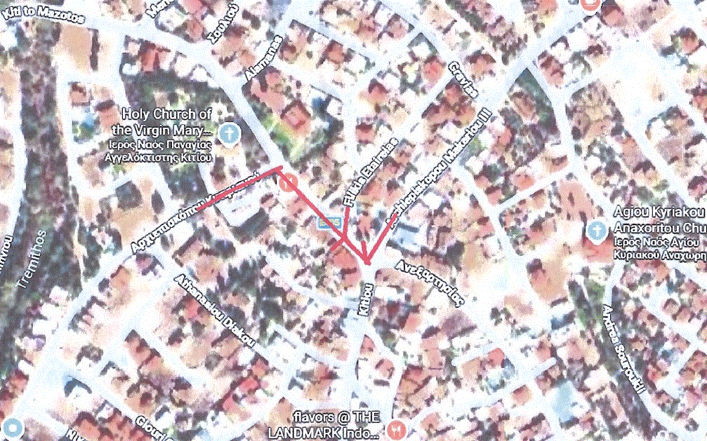 Στο επισυνημμένο σχέδιο παρουσιάζεται το τμήμα του δρόμου που θα παραμείνει κλειστό. Για την διακίνηση των οχημάτων θα υπάρχει οδική σήμανση. Οι διερχόμενοι οδηγοί προτρέπονται να είναι ιδιαίτερα προσεκτικοί και να ακολουθούν τις προειδοποιητικές Πινακίδες και τα μέτρα κυκλοφοριακής διαχείρισης που έχουν συμφωνηθεί με τις Αρμόδιες Αρχές.