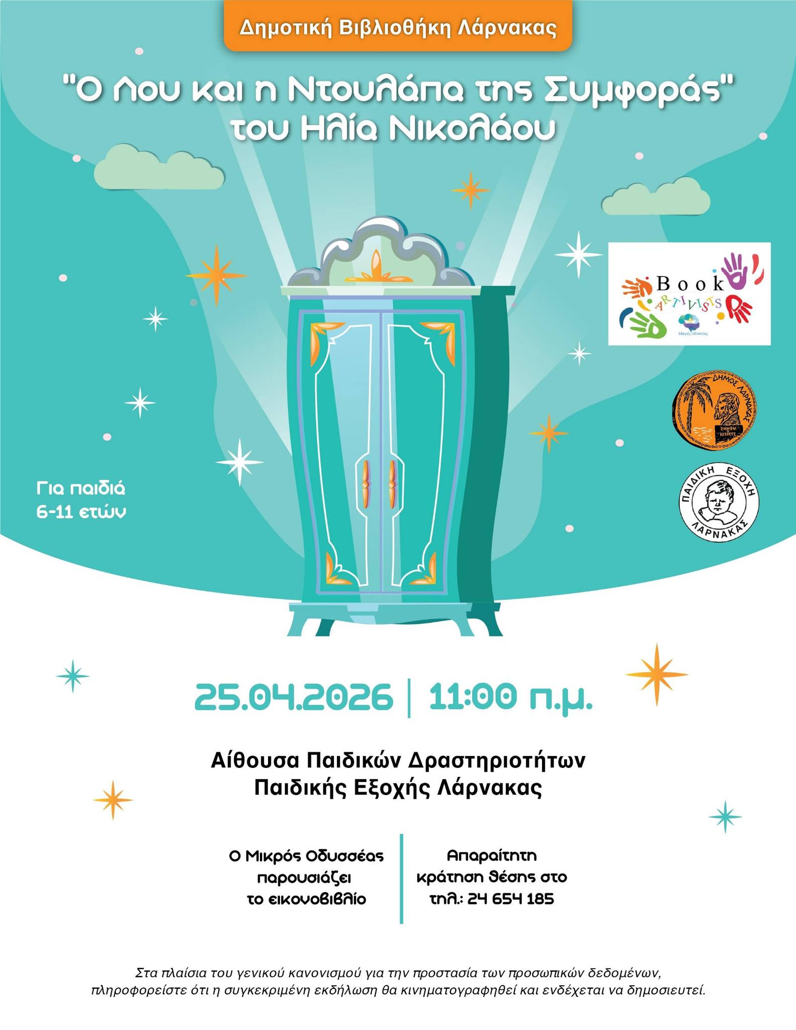 Αυτό το Σάββατο στη Δημοτική Βιβλιοθήκη Λάρνακας έρχεται “Ο Λου και η Ντουλάπα της Συμφοράς”